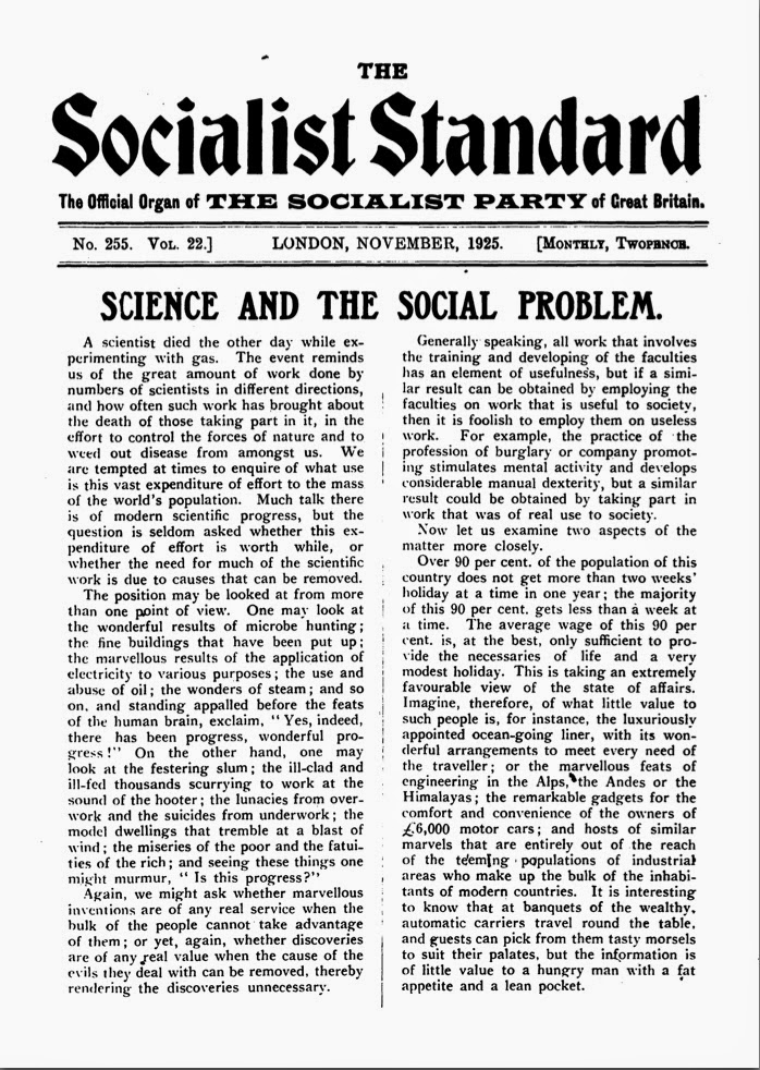 From the November 1925 issue of the Socialist Standard
