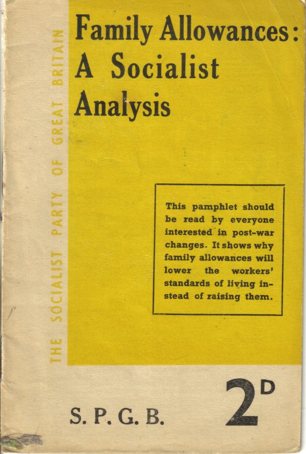 Family Allowances: A Socialist Analysis which we in the Socialist Party brought out at the time explained, this was not at all what it appeared to be: a money payment by the capitalist state which would leave all those with two or more dependent children better off by that amount.